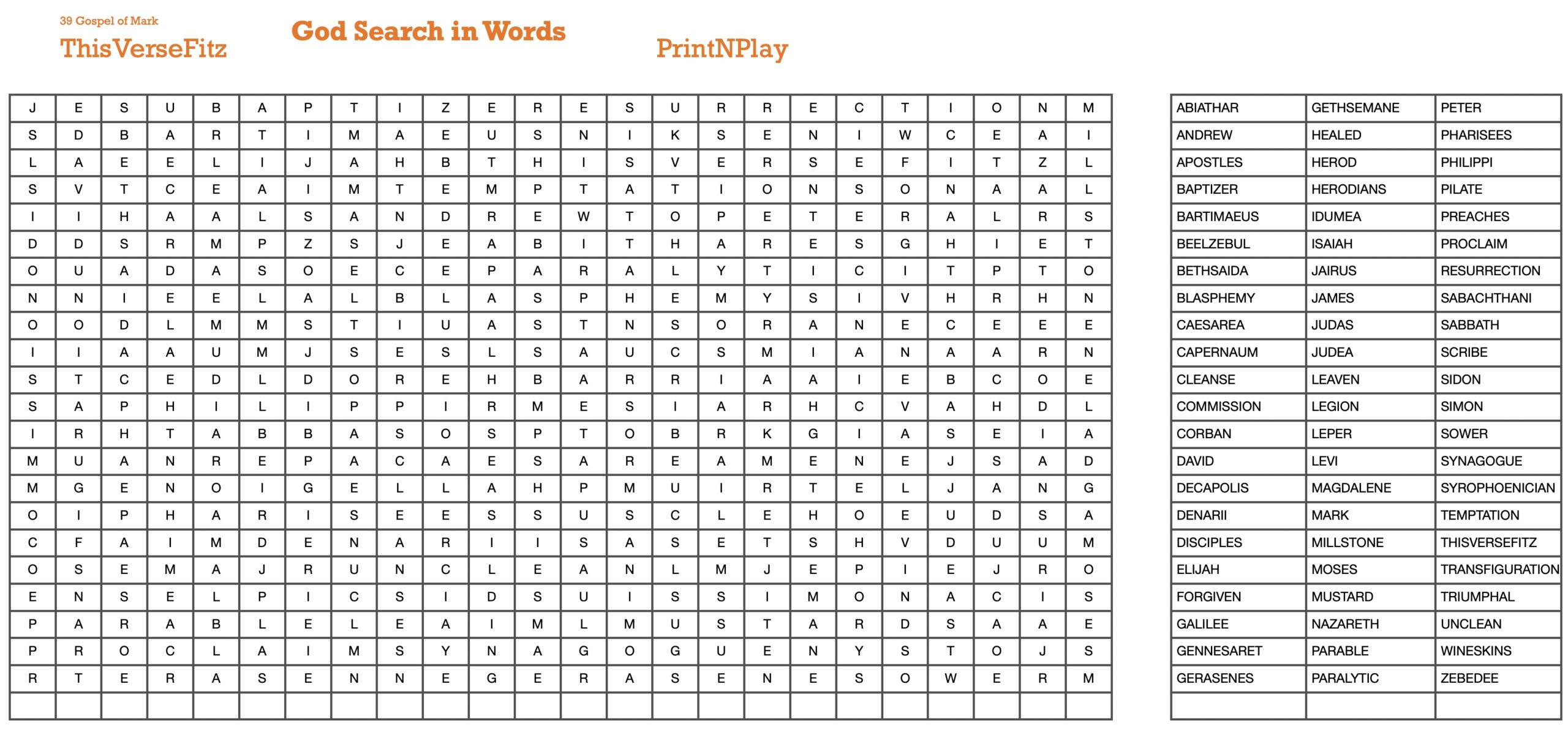 “God Search in Words” works exactly as a normal “Word Search” with a somewhat higher level of difficulty given the Biblical terms. Once all the words are found, the leftover letters repeat a phrase 5 times (meaning the phrase is present 5 times and zero letters of the phrase are left over). We call this the “AfterPuzzle”.