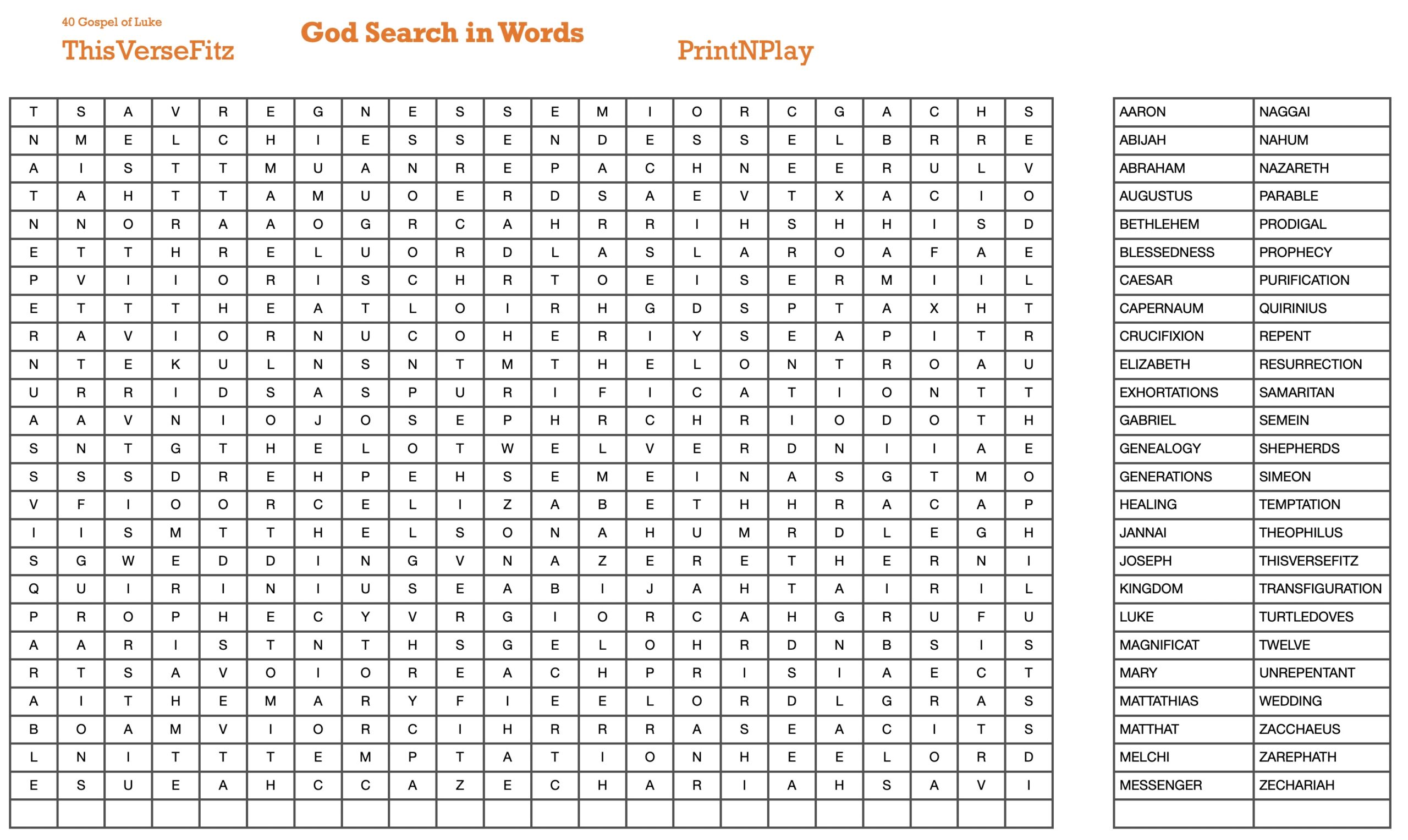 “God Search in Words” works exactly as a normal “Word Search” with a somewhat higher level of difficulty given the Biblical terms. Once all the words are found, the leftover letters repeat a phrase 9.4 times (meaning the phrase is present 9 times and 4 letters of the phrase are left over). We call this the “AfterPuzzle”.