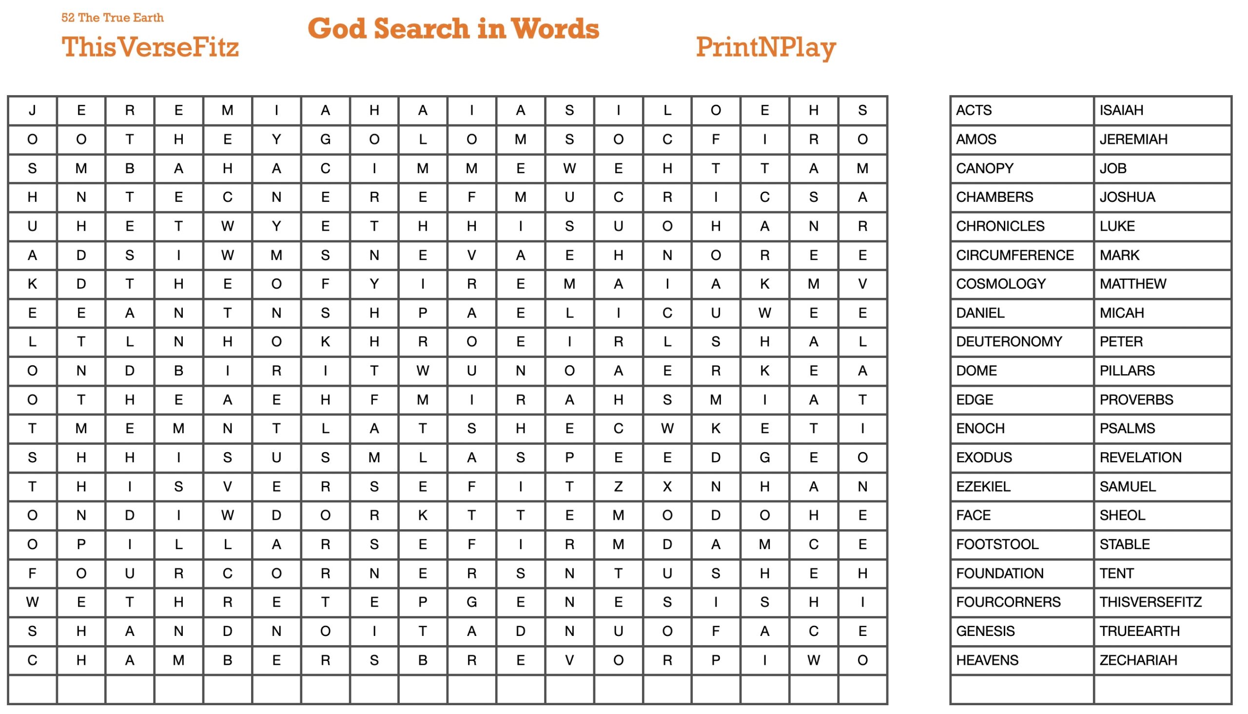 The book of Enoch which was removed from the well known Bible has many examples of the TRUe earTH and we have addressed it in “ThisVerseFitz # 20” and some portions below. Here are some verses from the well known Bible in alphabetical order which address the TRUe earTH: